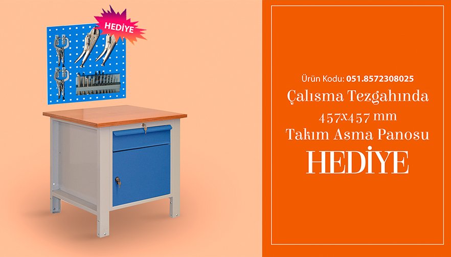 Seçili Dolaplı Çalışma Tezgahı Alana 457x457 Takım Asma Panosu Bedava