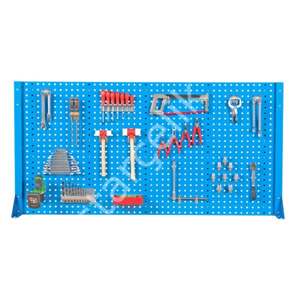 Ürün 2 adet 1700x457 mm delikli alet asma panosundan oluşmaktadır. Fotoğrafta bulunan kancalar HARİÇTİR ayrı sipariş edilebilinir. Tüm aksesuarlar plastik klips yardımıyla delikli panoya sabitlenebilmektedir. Görselde görülen el aletleri fiyata dahil değildir satışı yoktur. Tamamen endüstriyel kullanıma uygundur. Ürünün tüm montaj vidaları kutusunda gelmektedir. Vida ve dübel ile kolayca tezgah arkalarına monte edilebilmektedir. Panolar darbelere dayanıklı elektrostatik toz boyalıdır.
