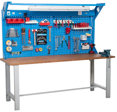 Genel Özellikler; ►Üst yüzey 30 mm organik yağlı kayın kontraplak tabladır. ►Delikli Takım asma panoludur. ►Led aydınlatmalıdır. ►Elektrik kanal tesisatı mevcuttur.(Pako şalter, kaçak akım rolesi, 2 adet 220V priz, sigortları ve açma kapama anahtarı) ►Takım asma kancaları ve el aletleri dahil değildir. ►Tezgah alt kısmında ara bağlantı mevcuttur. ►Tezgah yüksekliklerimiz ayaklarda bulunan yükseltme aparatı sayesinde tek kademe olarak (100mm) yükseltilebilmektedir. ►Ayak yüksekliği kapalı 830 mm açık 930 mm'dir. ►Elektrostatik toz boyalıdır. ►Renk : Tezgah ayakları RAL-7035 (Açık Gri) / Diğer Aksamlar RAL-5015 (Açık Mavi)