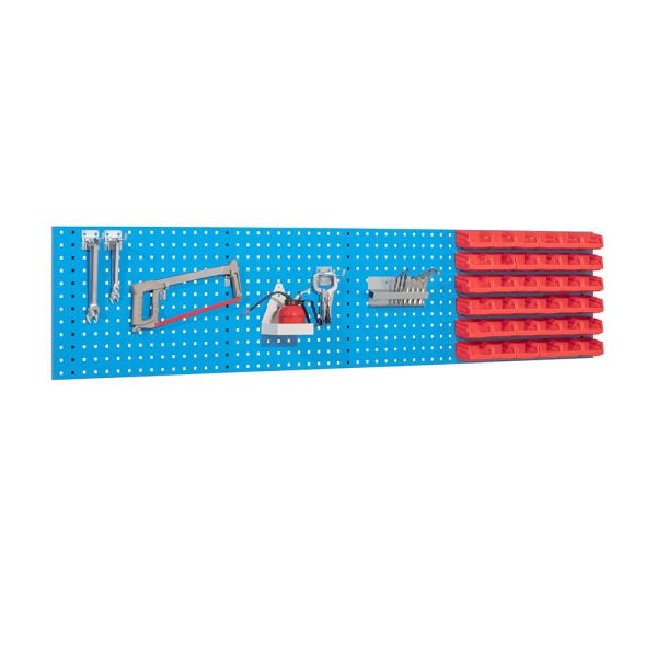 Genel Özellikler; ►Ürün 1 adet 2130x457mm delikli panodan oluşmaktadır. ►Sac kalınlığı 1,2mm'dir. ►Tamamen endüstriyel kullanıma uygundur. ►Tezgah arkalarına kolayca monte edilebilmektedir. ►Ürünün tüm montaj vidaları kutusunda gelmektedir. ►Fotoğrafta bulunan kancalar HARİÇTİR ayrı sipariş edilebilinir. ►Aksesuarlar tek tek olarak da ayrıca satılmaktadır. ►36 adet PA 01 Plastik Avadanlık Kutusu (Kırmızı) ►Elektrostatik toz boyalıdır. ►Renk : RAL-5015 (Açık Mavi)